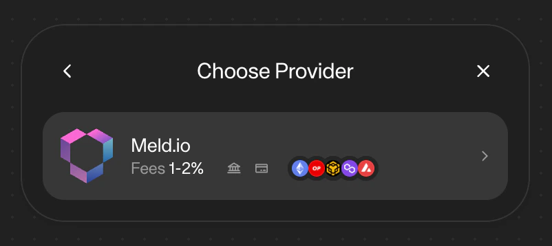 Complete your purchase using your selected provider. You will be prompted to sign in to your Meld account. If the payment page does not appear, you can copy link from the wallet modal and paste it in your browser.